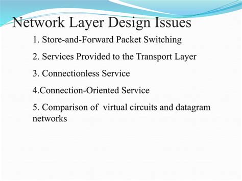 The following are the design issues for the layers: It handles the service requests from the transport layer and further forwards the service request to the data link layer. The network layer design issues contain the services position to the transport layer, routing packets over the subnet, congestion control, and connection of multiple networks together. About press copyright contact us creators advertise developers terms privacy policy & safety how youtube works test new features press copyright contact us creators.