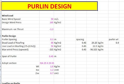 Firstly the designer must input the details of a proposed z purlin for analysis. The spreadsheet includes two separate spreadsheets for the design of standard sized z purlins and z purlins of any dimensions. View design of purlins excel.xlsx from cs 10 at mapúa institute of technology. The engineering community provide excel spreadsheets for civil & structural engineers for structural.
